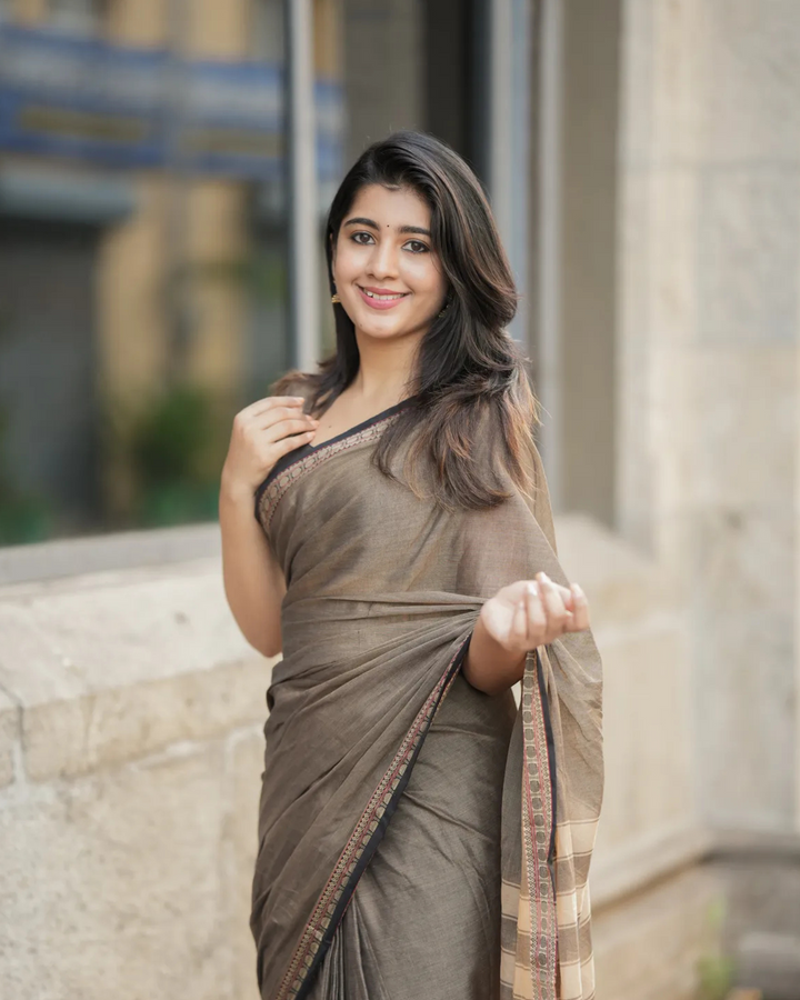 Beige Color 1 - Minute Ready to Wear Mulmul Cotton Saree with Blouse Piece