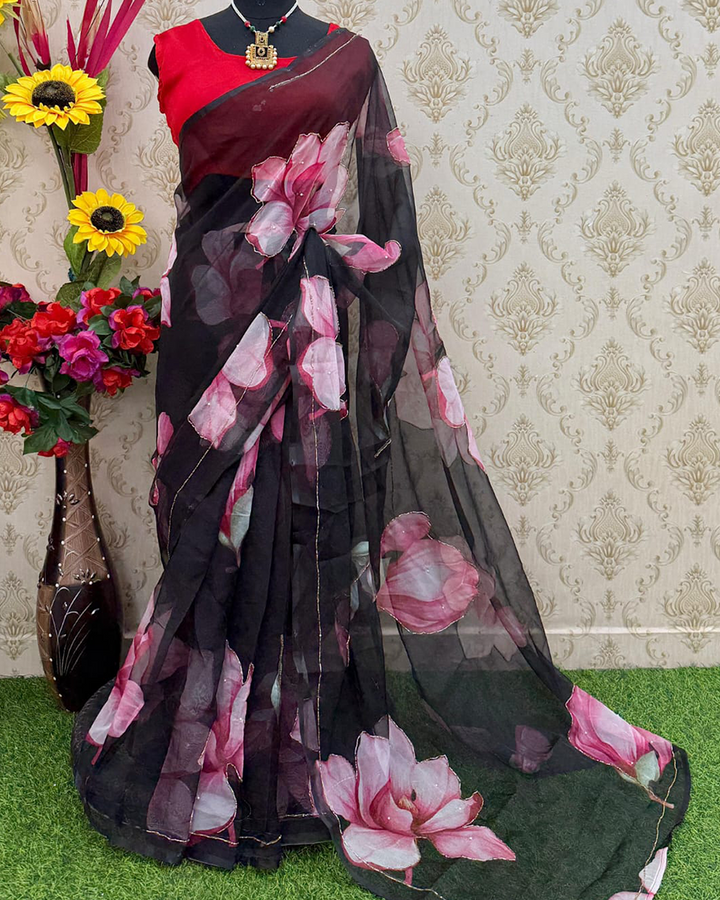 • Saree Fit : Each saree comes with an adjustable waistband and can comfortably fit women with waist sizes ranging from 26 to 46 inches.