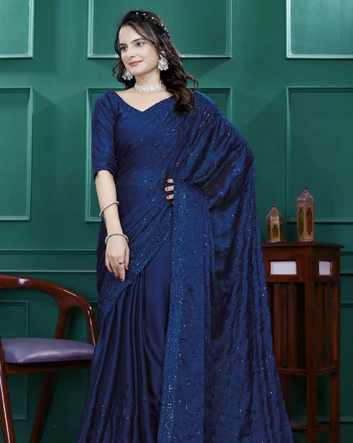 - Blouse Fit: 1. If the blouse is stitched, it is made to fit sizes up to bust 44 inches with a comfortable cut. 2. If the blouse is unstitched, you will receive blouse fabric along with the saree, which can be tailored as per your measurements.