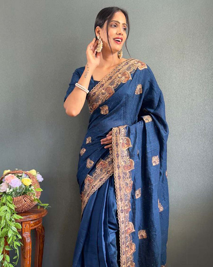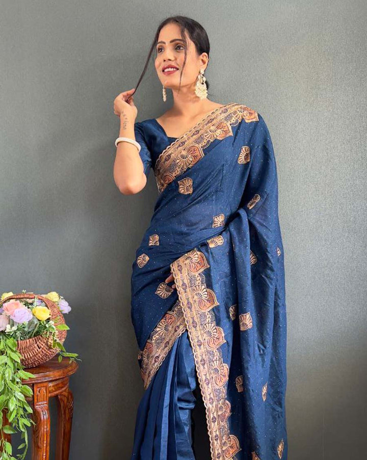Bottle blue Color 1 - Minute Ready to Wear Vichitra silk Saree with Unstitch Blouse Piece