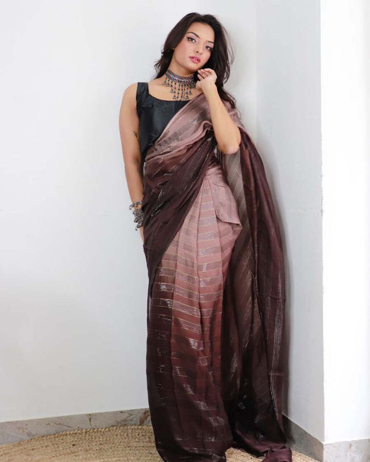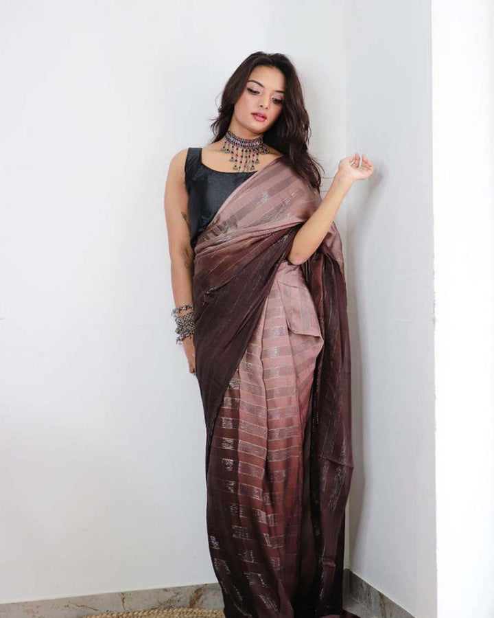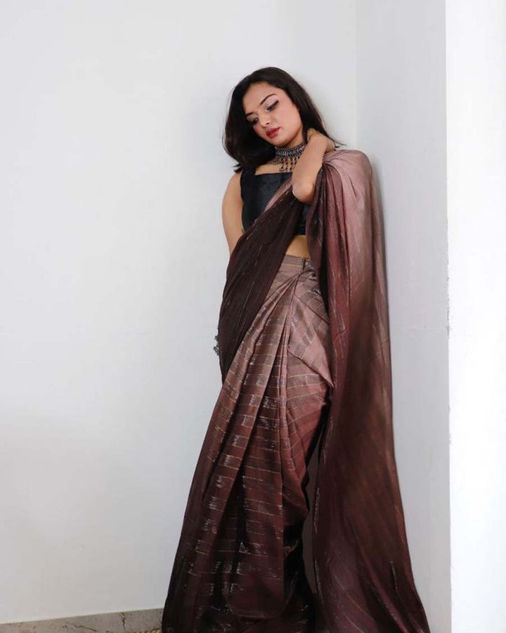 Brown Color 1-Minute Ready To Wear Georgette Saree With Blouse Piece