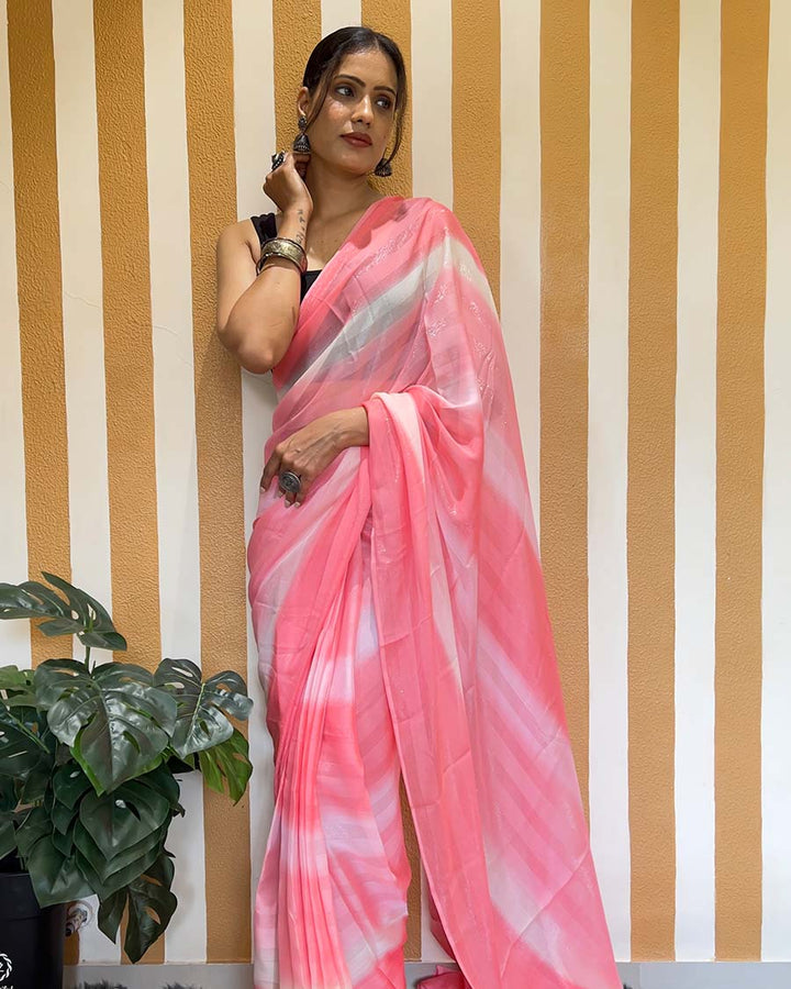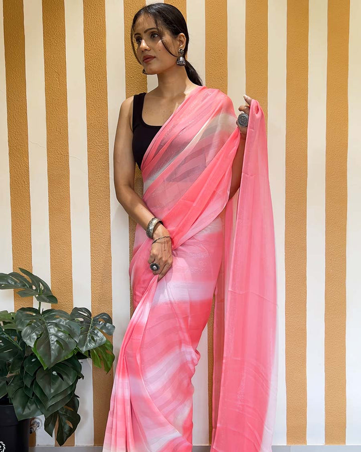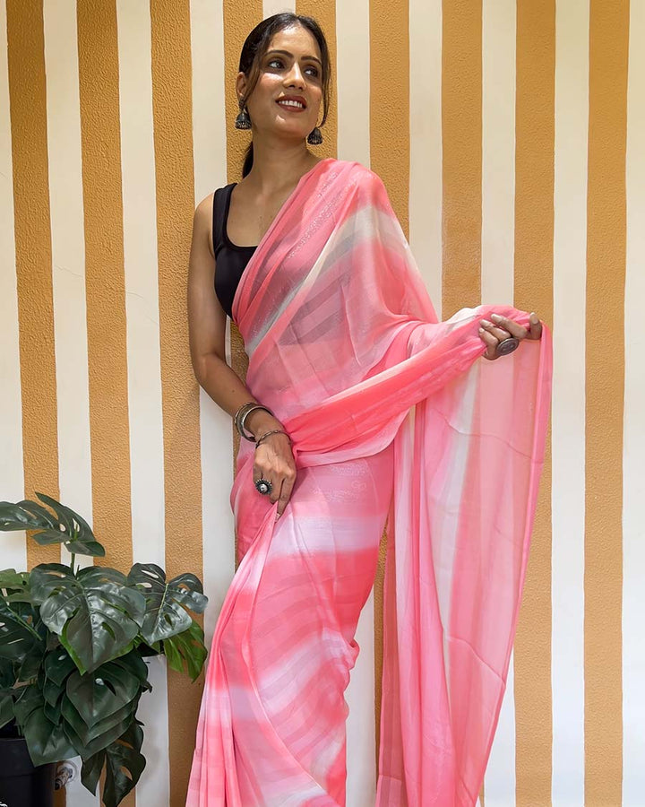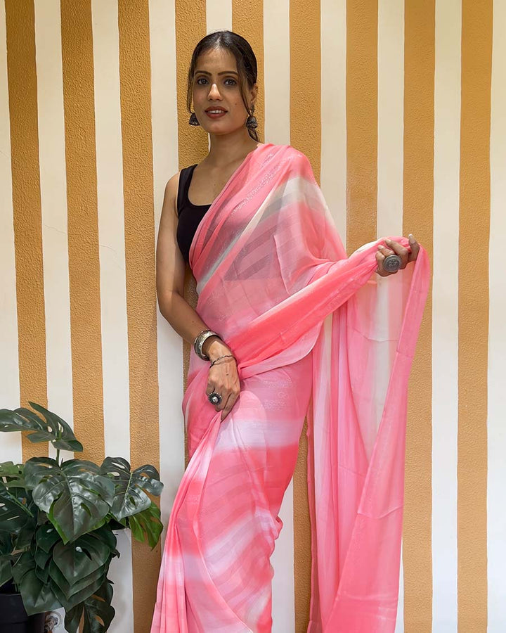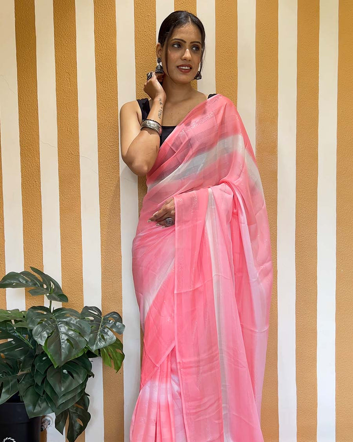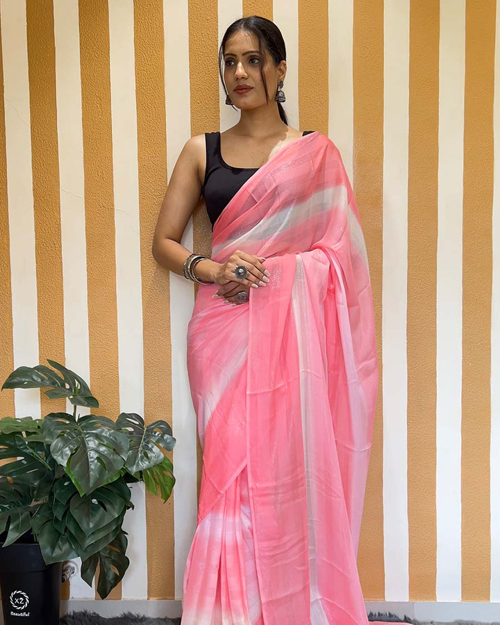 Calm Pink Color 1-Minute Ready To Wear Naylon Saree With Blouse Piece