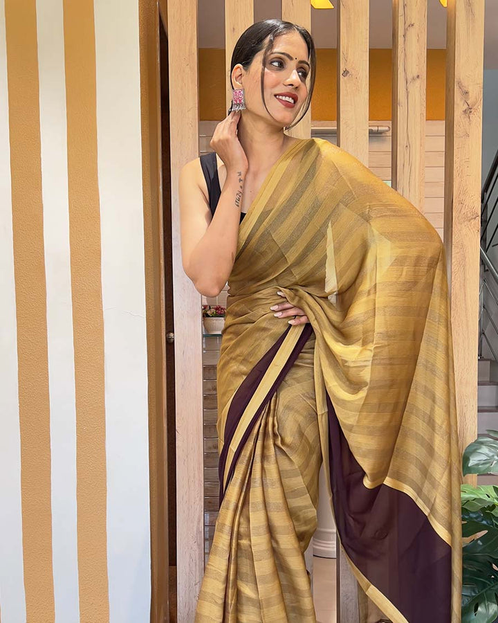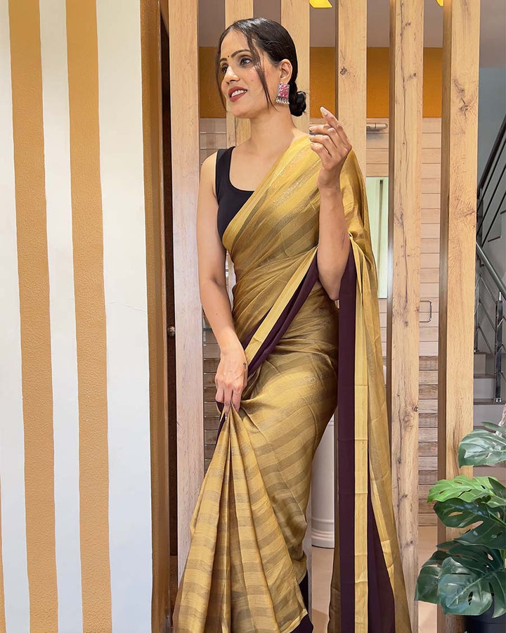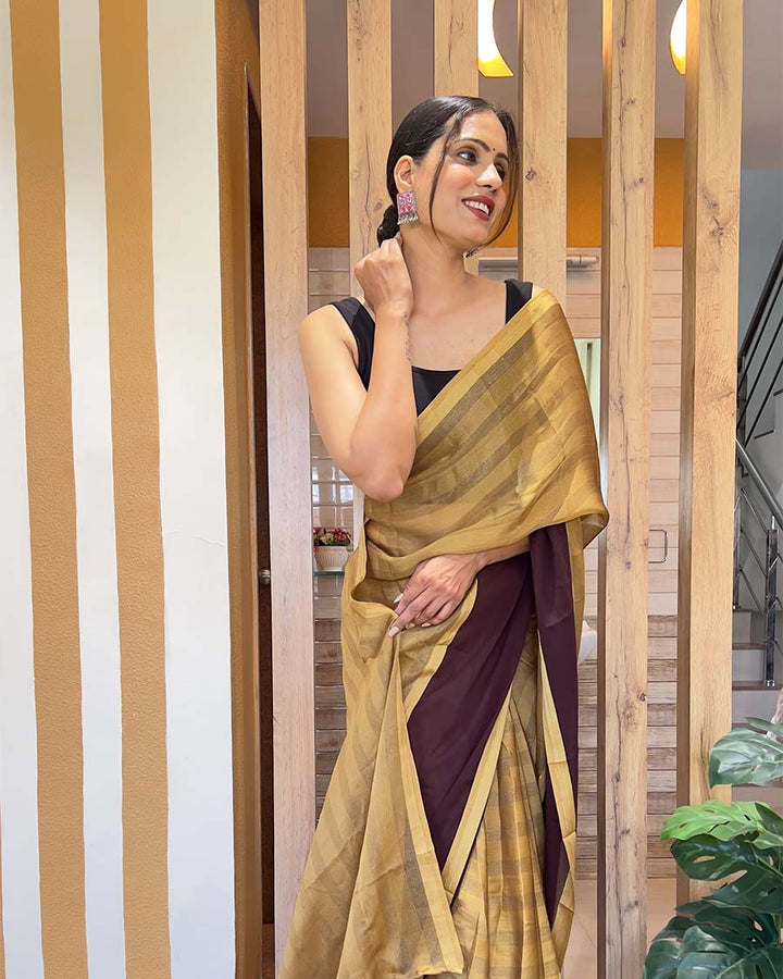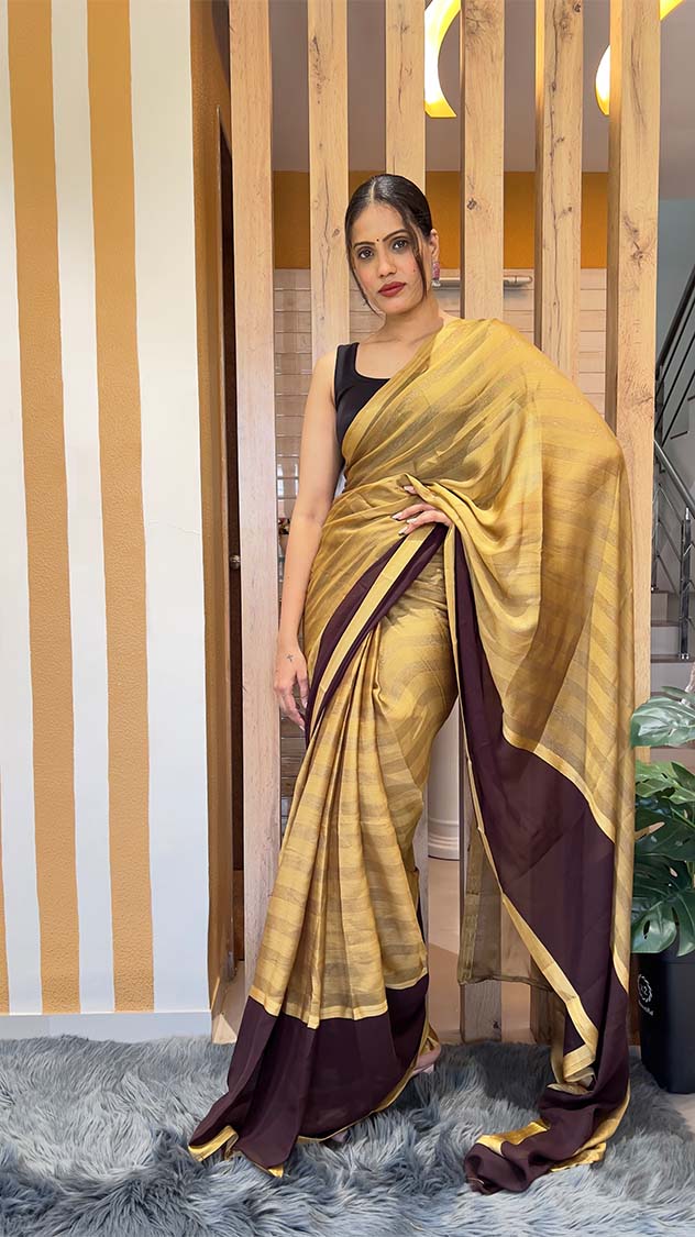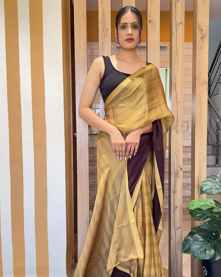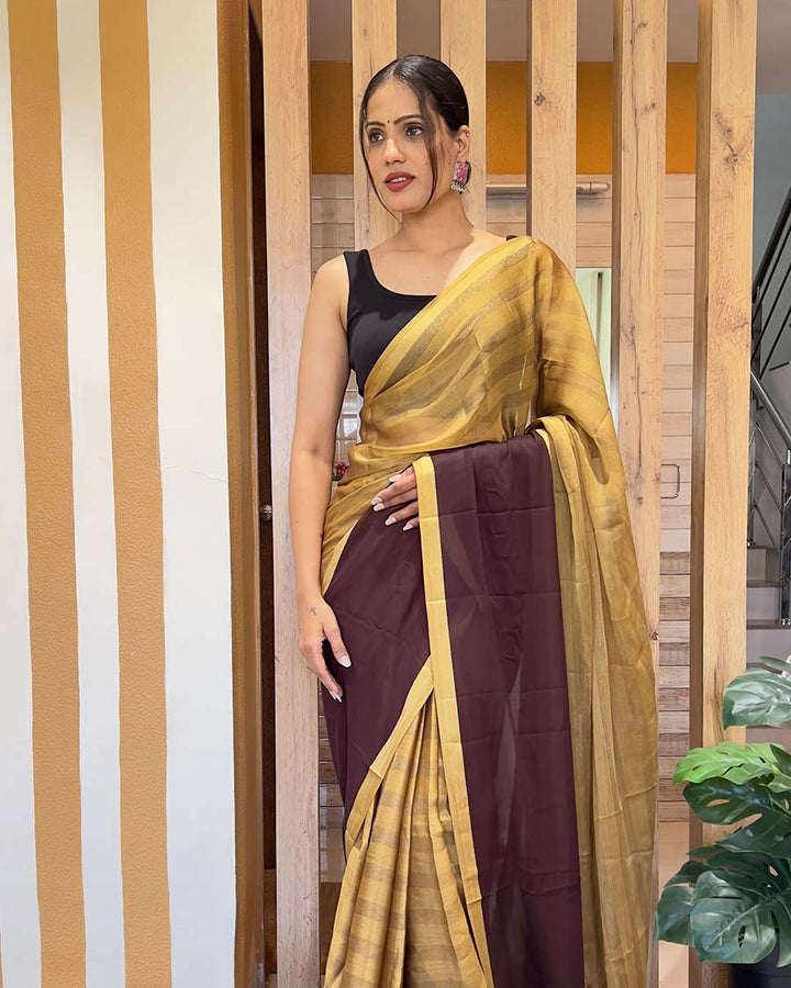 Coffee Color 1-Minute Ready To Wear Nylon Saree With Blouse Piece