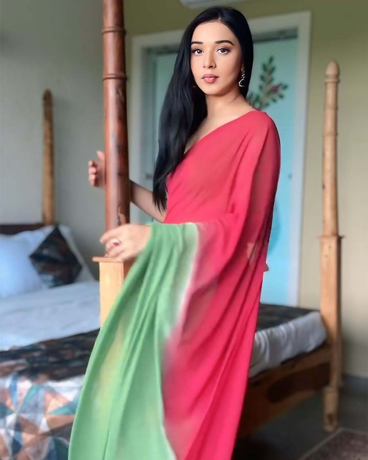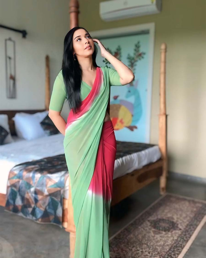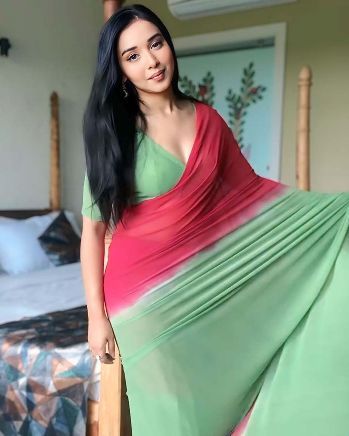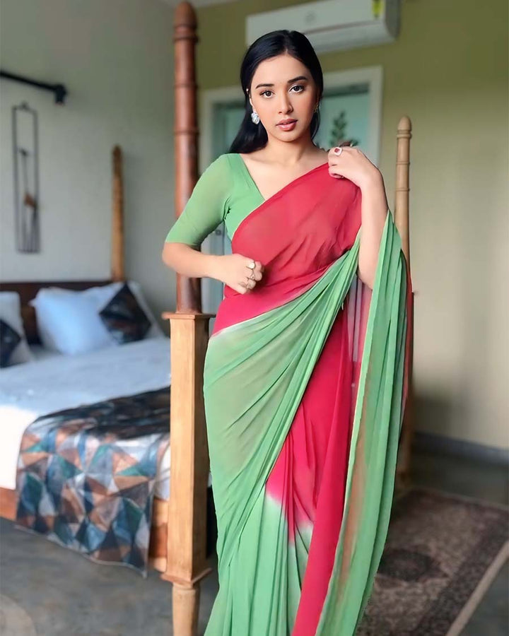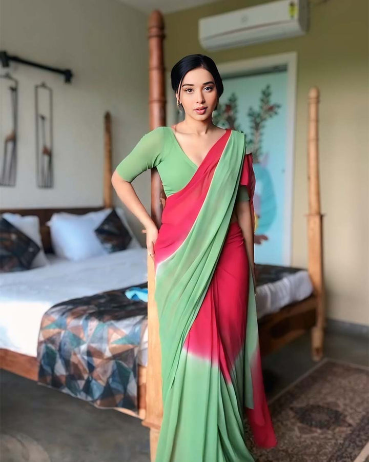Dual Color 1-Minute Ready To Wear Georgette Saree With Blouse Piece
