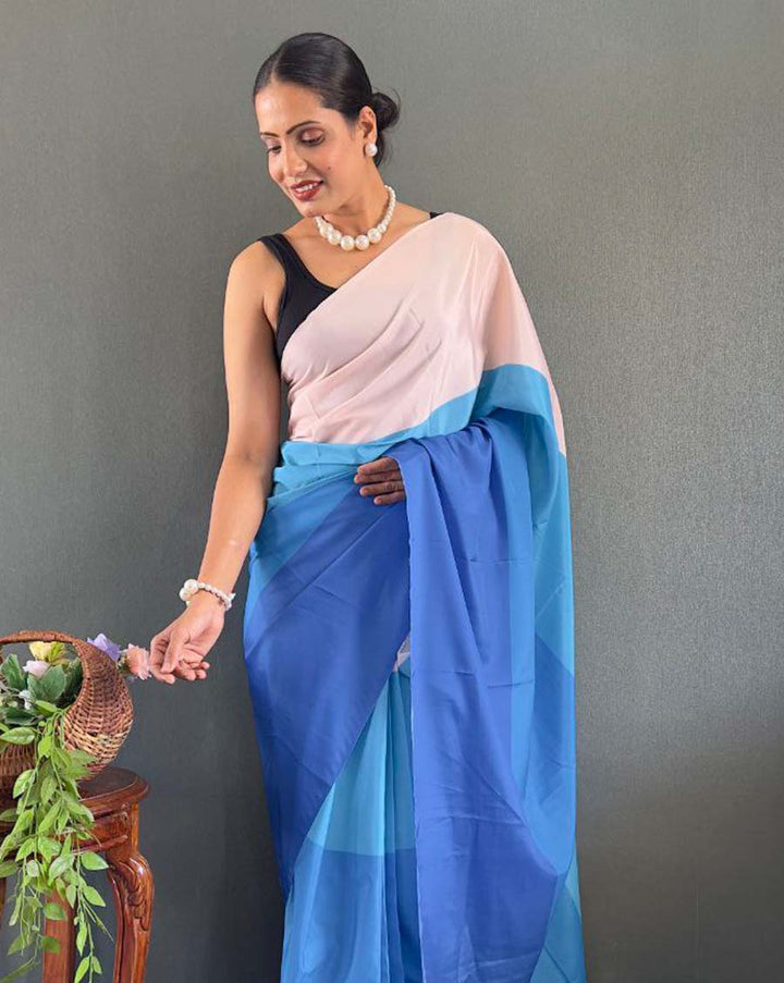 Saree : 1-Minute Ready to Wear Saree :: Blouse Piece: 0.80Mtr