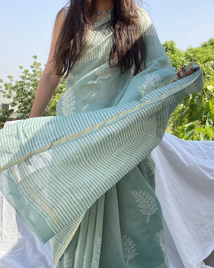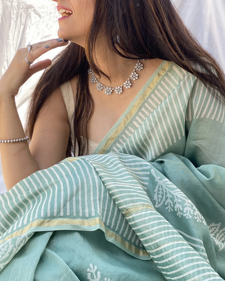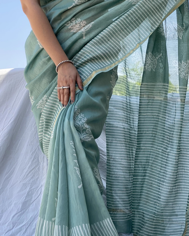 Green Color 1 - Minute Ready to Wear Mulmul Cotton Saree with Blouse Piece