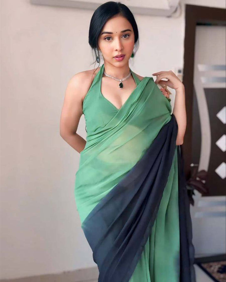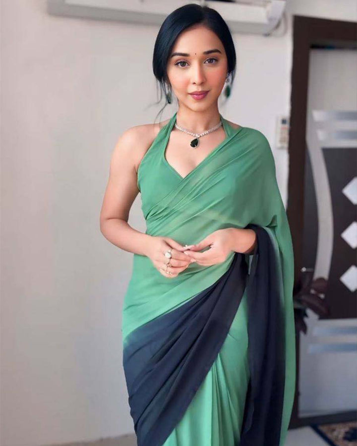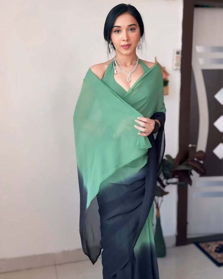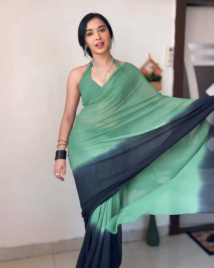 Green Colour 1-Minute Ready To Wear Georgette Saree With Blouse Piece
