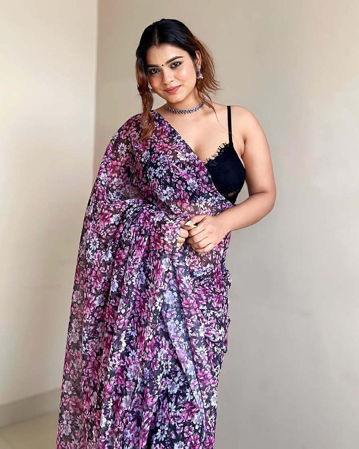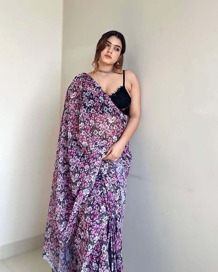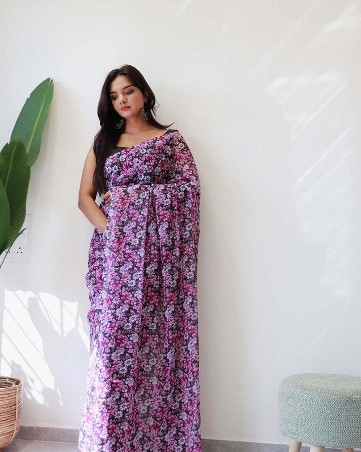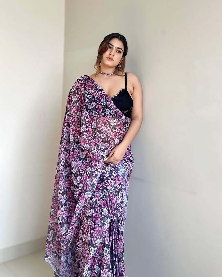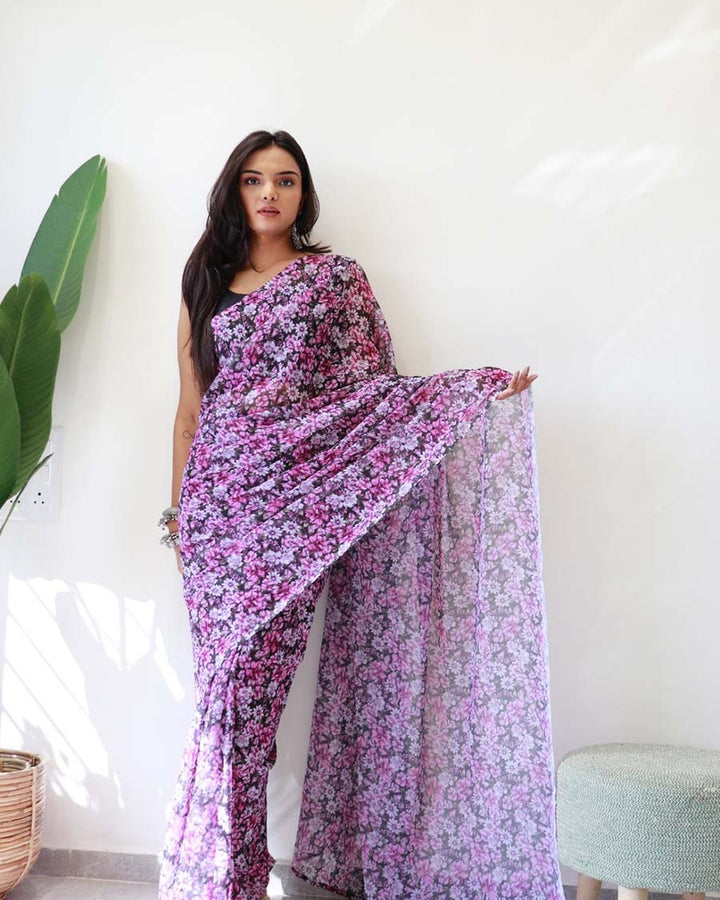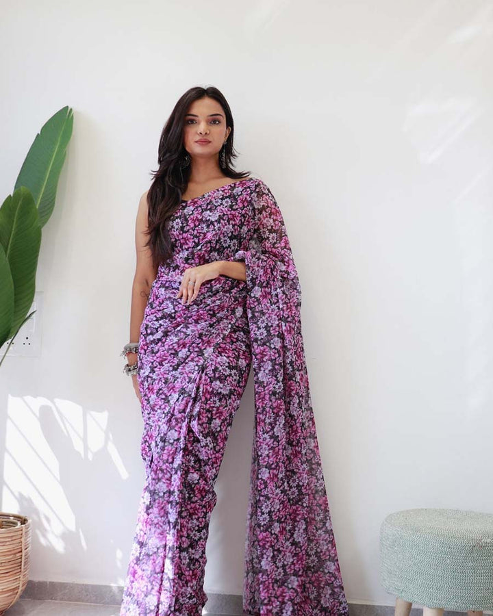 Light Purple Color 1-Minute Ready To Wear Georgette Saree With Blouse Piece