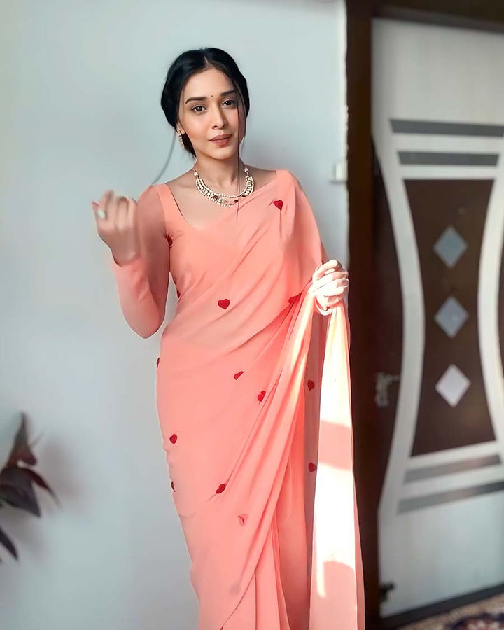Light Saffron Color 1-Minute Ready To Wear Georgette Saree With Blouse Piece