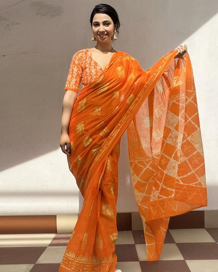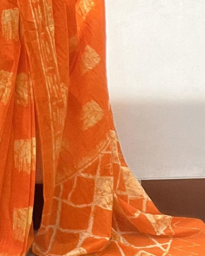 - Blouse Fit: 1. If the blouse is stitched, it is made to fit sizes up to bust 44 inches with a comfortable cut. 2. If the blouse is unstitched, you will receive blouse fabric along with the saree, which can be tailored as per your measurements.