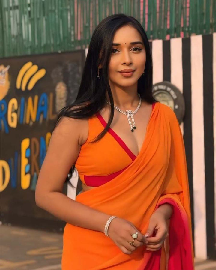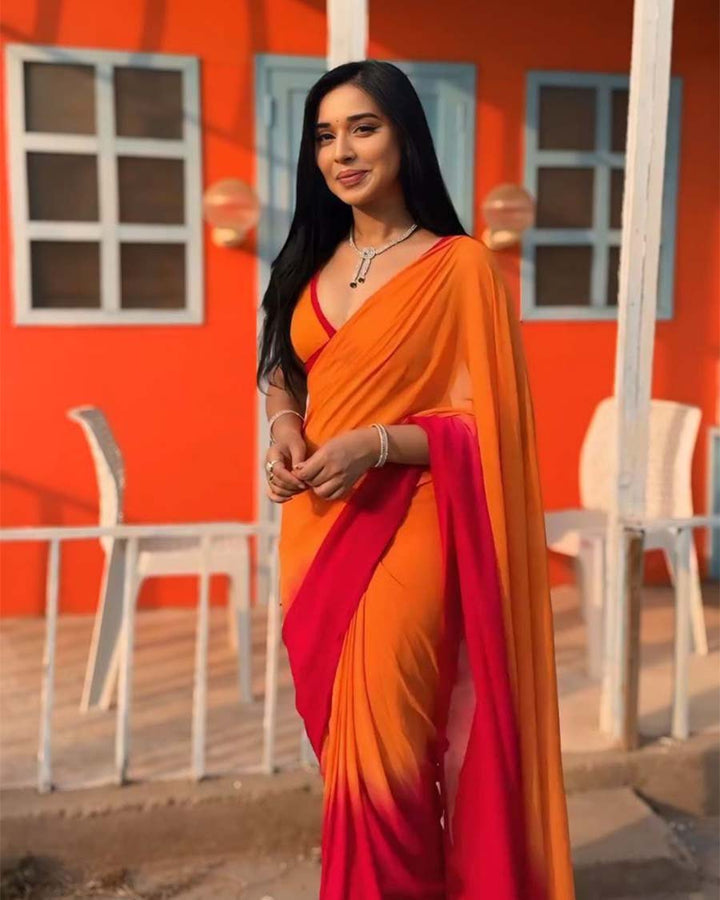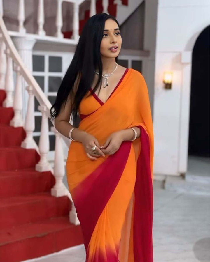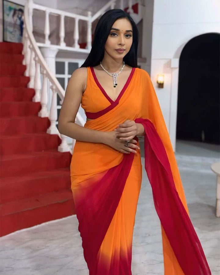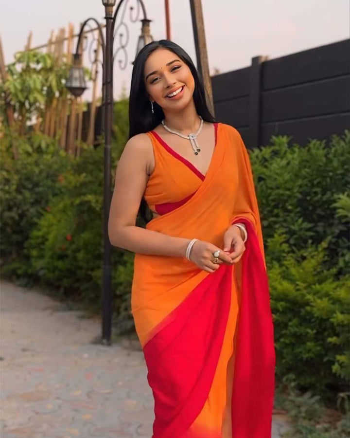 Orange Colour 1-Minute Ready To Wear Georgette Saree With Blouse Piece