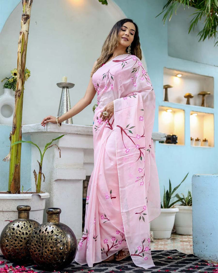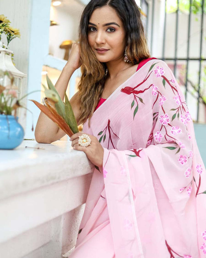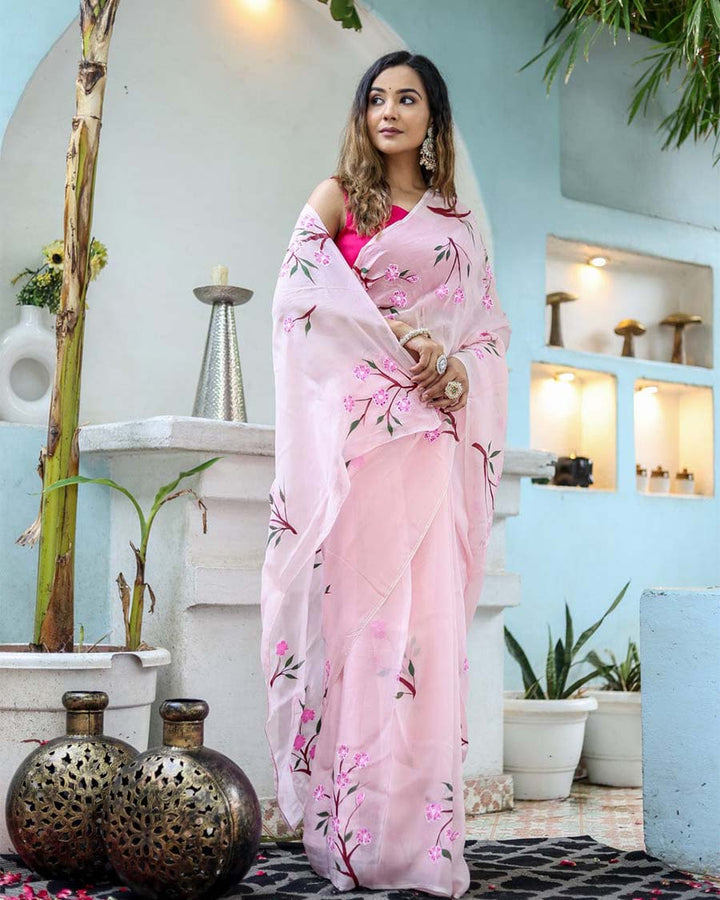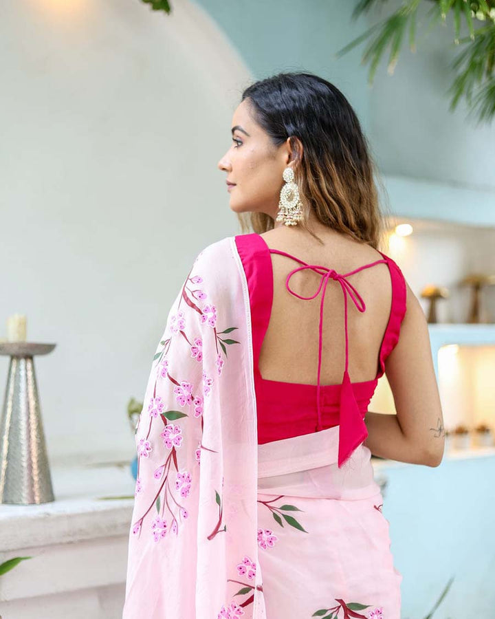 Pink Color 1-Minute Ready To Wear Georgette Saree With Blouse Piece