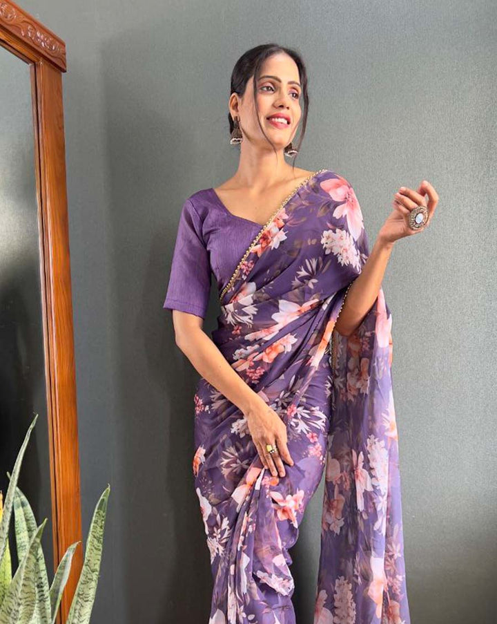 Saree : 1-Minute Ready to Wear Saree :: Blouse Piece: 0.80Mtr