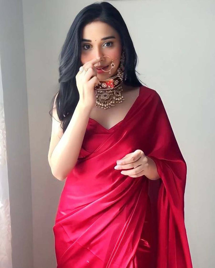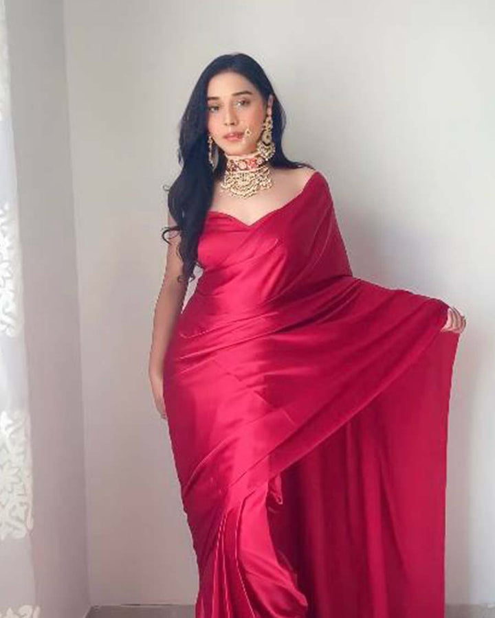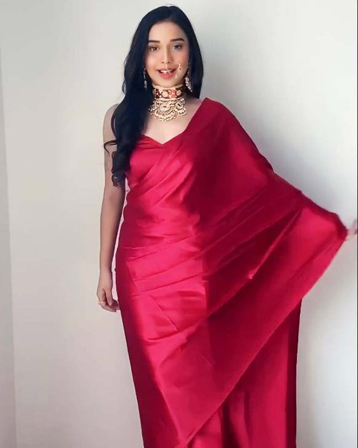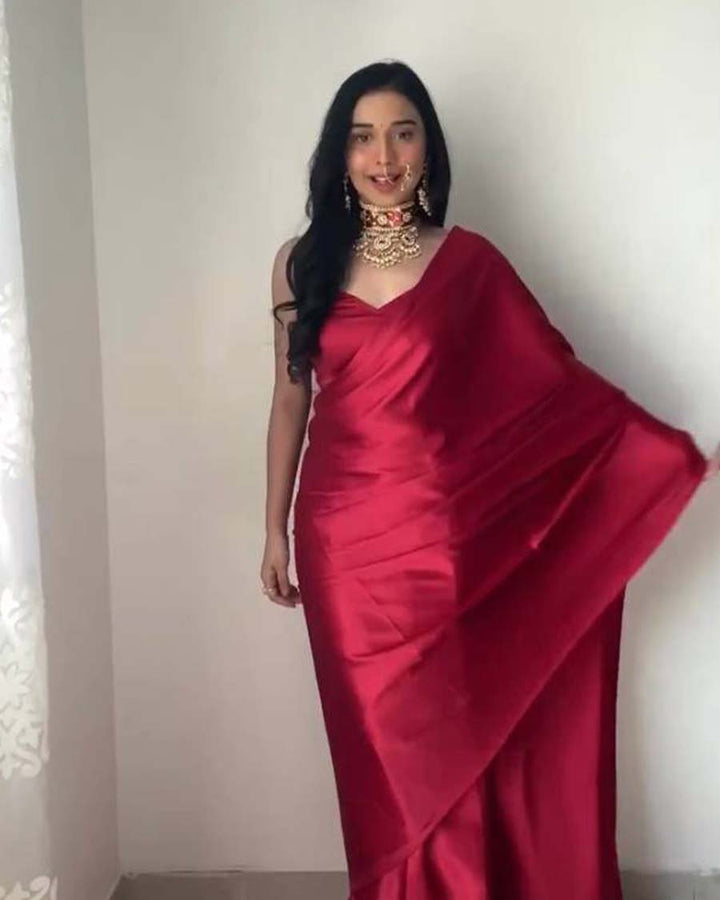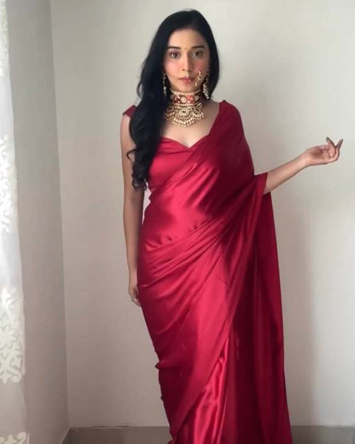 Red Color 1-Minute Ready To Wear Naylon Saree With Blouse Piece