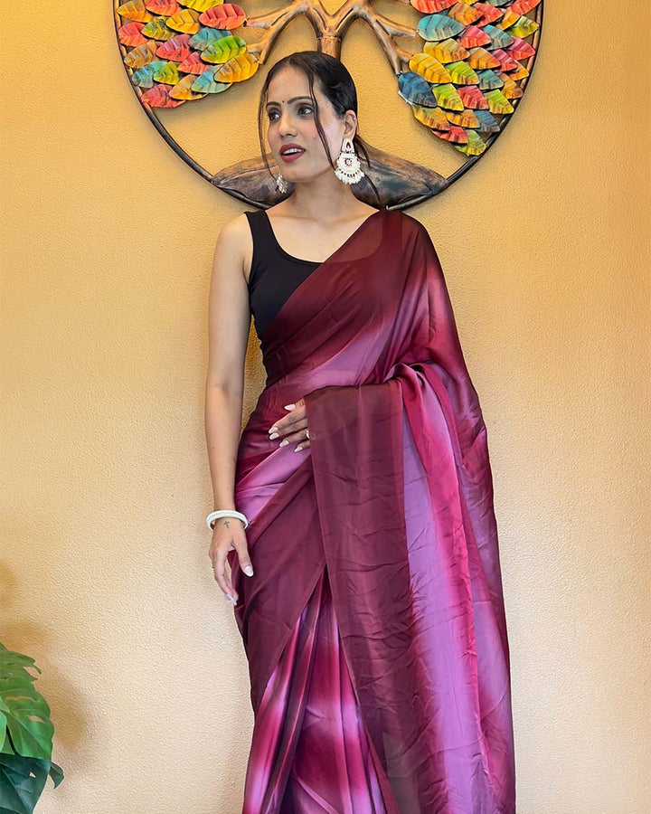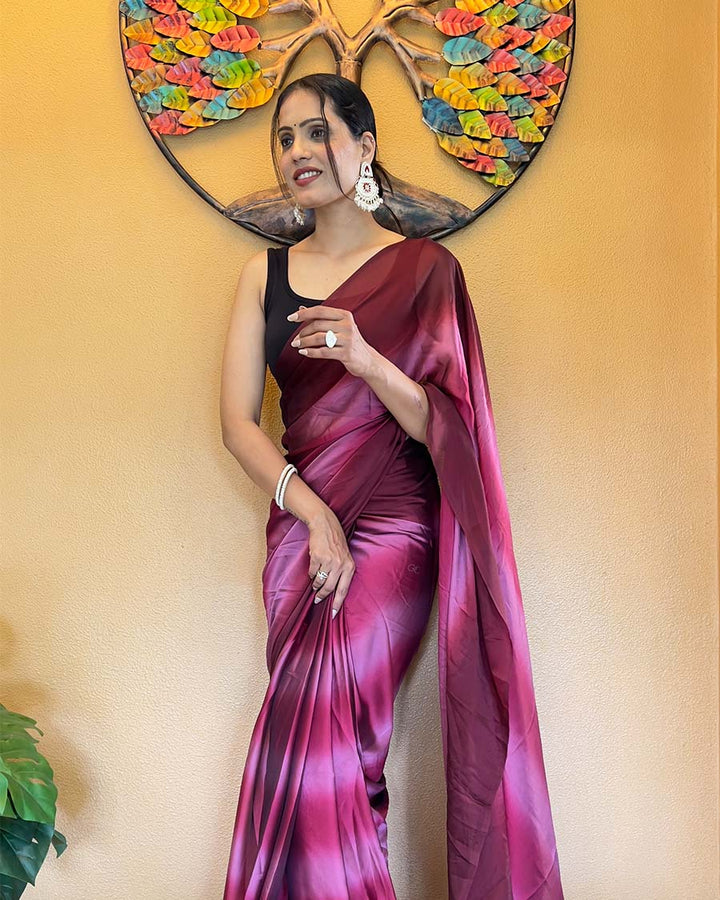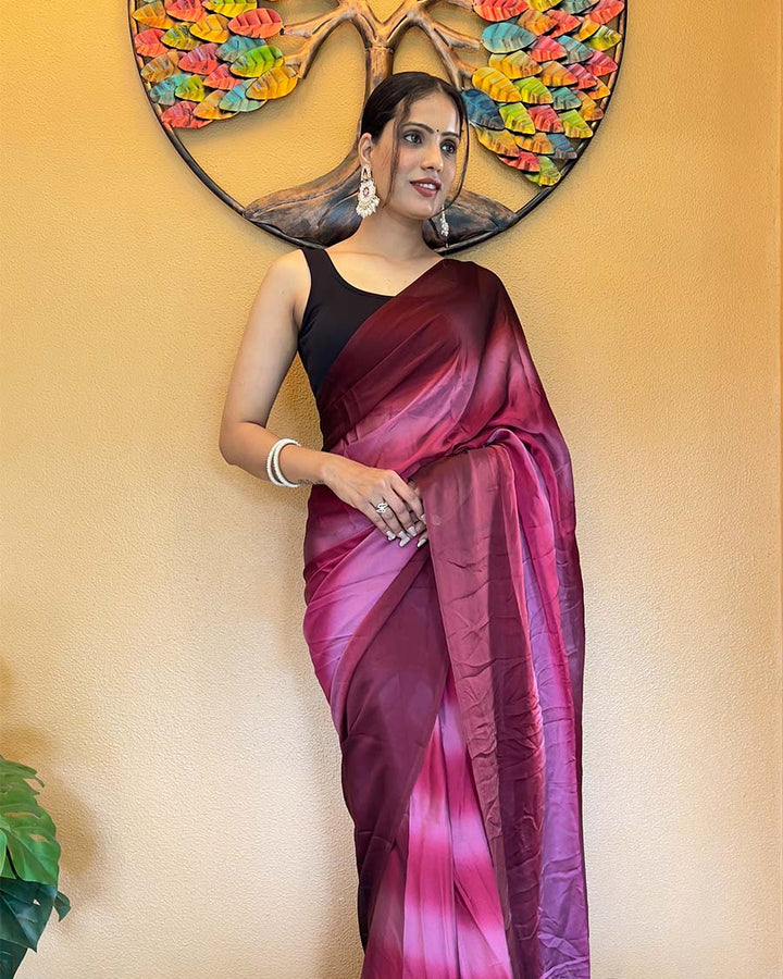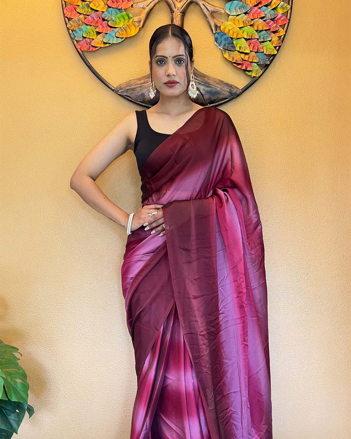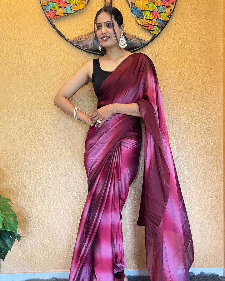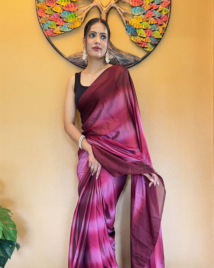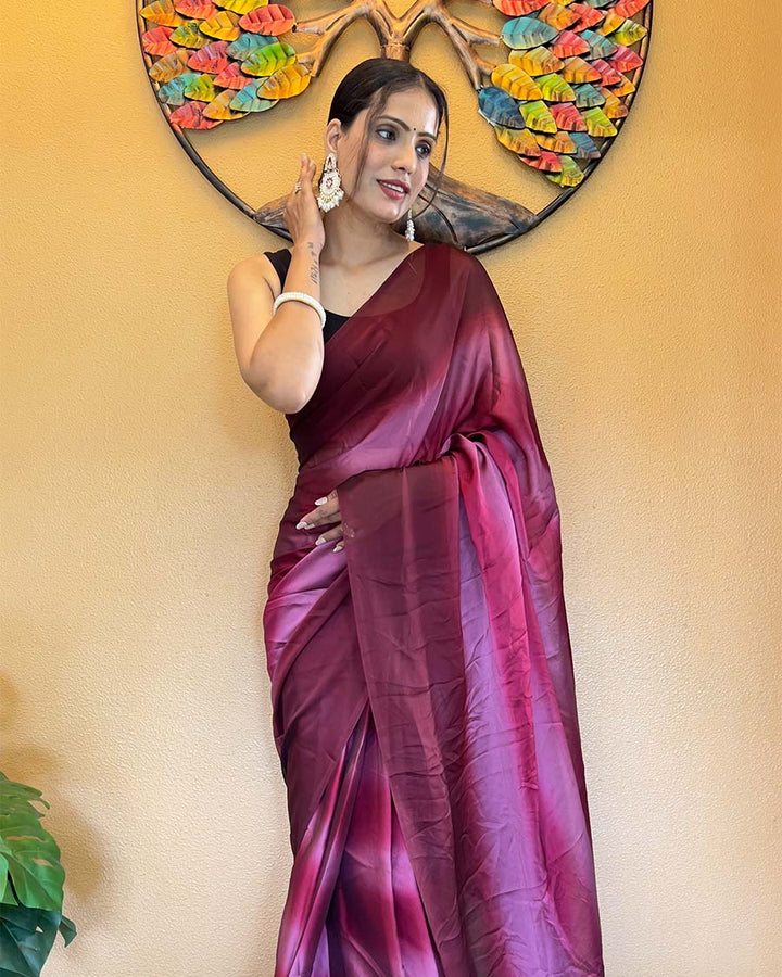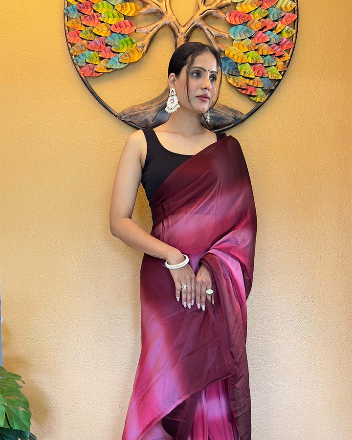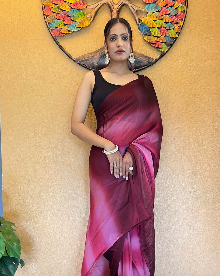 Wine Color 1-Minute Ready To Wear Georgette Saree With Blouse Piece