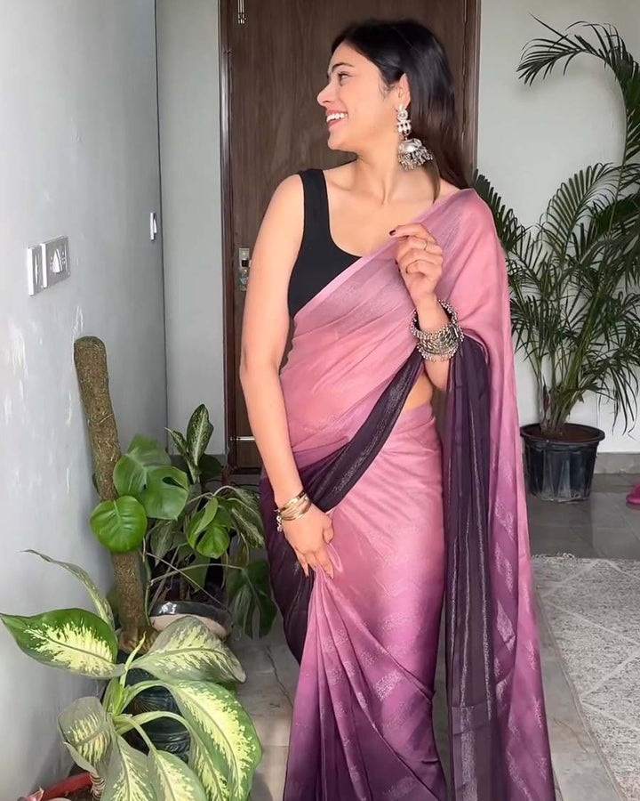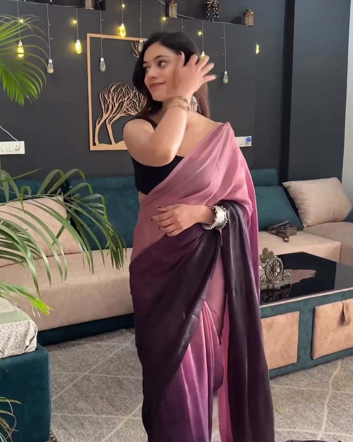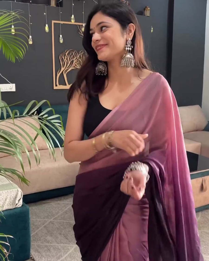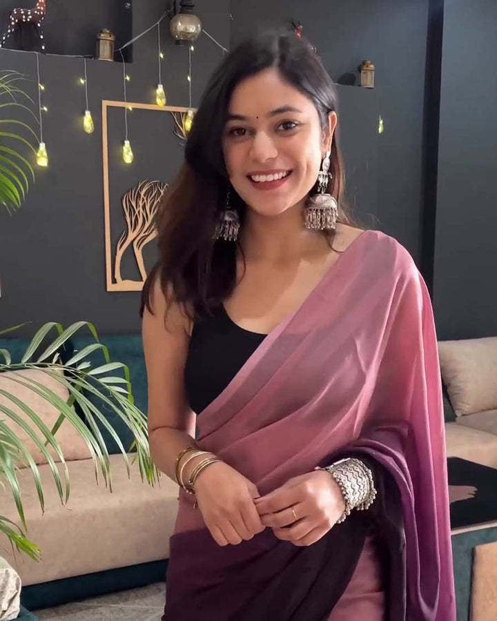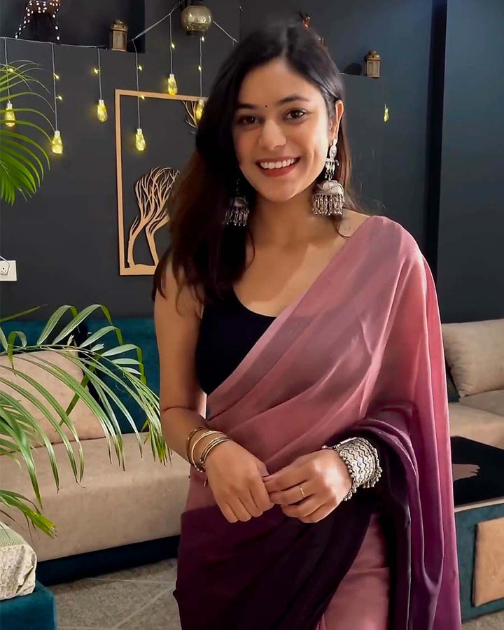 Wine Color 1-Minute Ready To Wear Georgette Saree With Blouse Piece
